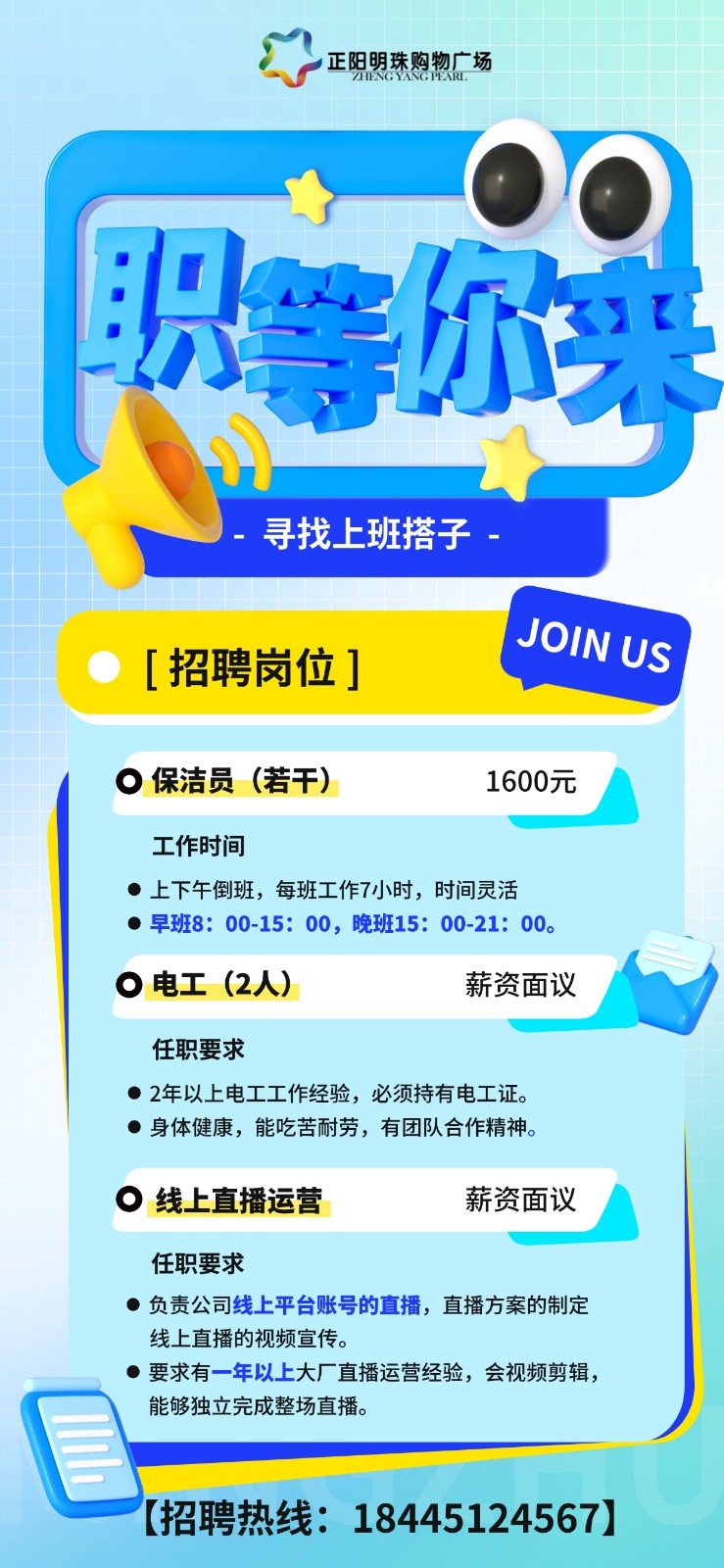 當(dāng)前位置:首頁 > 招聘求職 > 招聘 > 正陽明珠購物廣場招聘