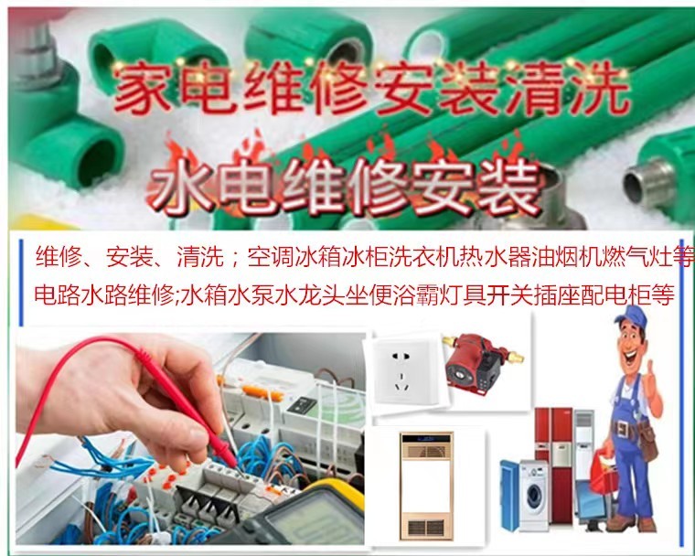 ①維修安裝清洗:空調(diào)、洗衣機(jī)、熱水器、水箱、油煙機(jī)、冰箱、冰柜、燃?xì)庠畹取?/span>