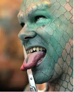 舌頭分叉,頭上長(zhǎng)犄角,眼白通紅,人身狗臉,這不都是傳說中的妖精嗎?今天我們就來盤點(diǎn)一下國(guó)外奇葩整形,看看你的心理承受能力有多強(qiáng)?